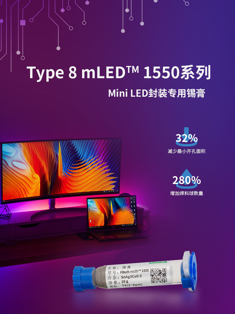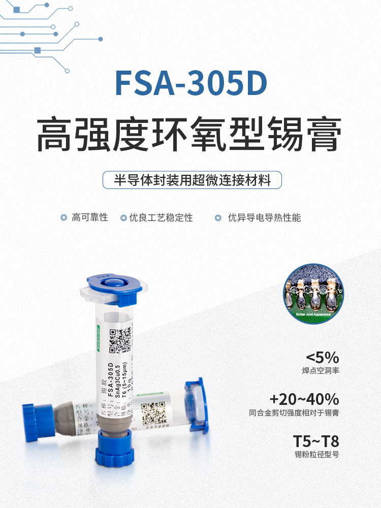 環(huán)氧樹脂錫膏,焊點(diǎn)加固,絕緣性加強(qiáng),適用微間距,工藝簡化提升效率,包括規(guī)模商用的 6號粉、7號粉、8號粉,以及尖端應(yīng)用9號和10號粉